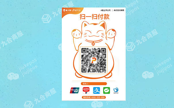 所以,并不是免费的收款码就是好的,对商家来讲,其实选择兼容多种线上支付方式的第三方收款码操作起来更加方便快捷。像九合商服提供的收钱吧,富友等都是比较常见的第三方收款码,这种收款码不论是微信支付,支付宝支付,还是银行卡支付都可以通过扫码完成,多种线上支付方式可全部扫码进入同一个第三方平台账户中,商家结算是非常方便的。